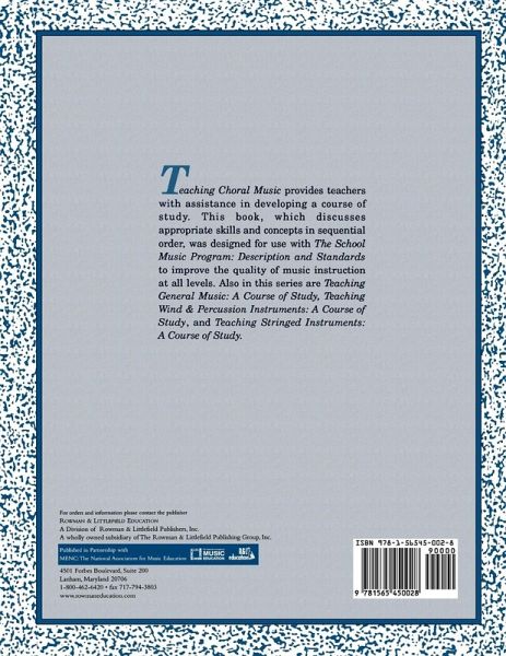 Co-published by MENC: The National Association for Music Education. Provides a framework for sequential instruction, model lessons, and recommendations for ensuring high-quality choral experiences. This book was developed by the MENC Task Force on Choral Music Course of Study for teachers of choral music programs in grades 4-12 and is recommended for text adoption.