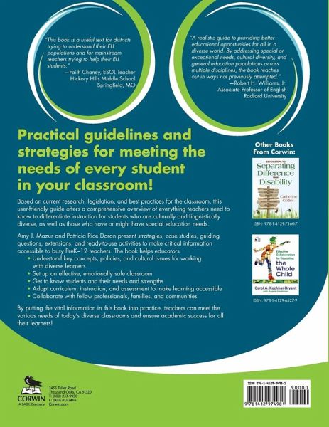 This book provides an easily accessible, user-friendly guide to issues of cultural and linguistic diversity, particularly as they impact the identification, instruction, and assessment of students with special education needs. The authors present practical explanations of important concepts, strategies, and case studies, making information accessible to busy primary and secondary teachers while also drawing on current research. This book includes: - Ready-to-use activities for observation, assessment, and/or planning - Flow charts, tables, and bulleted lists to make key concepts accessible -…mehr