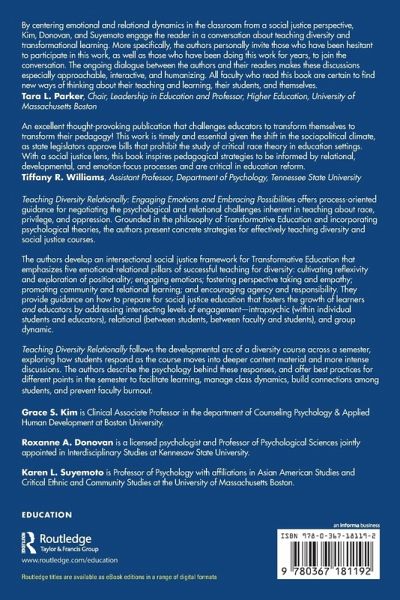 This book offers process-oriented guidance for negotiating the psychological and relational challenges inherent in teaching about race, privilege, and oppression. Grounded in the philosophy of Transformative Education, it presents concrete strategies for effectively teaching diversity and social justice courses.