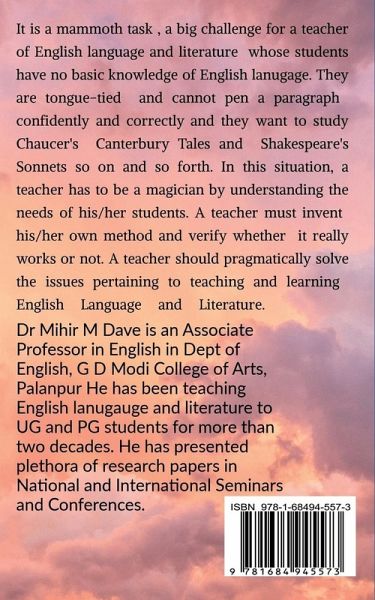 The book is all about how teaching English Language and Literature can be result oriented for those students whose Enlgish is very poor and cannot venture at all to express themselves in English. This book will prove to be helping hand to those teachers of English language and Lierature who are teaching in rural areas where students have no pen language and tongue lanugate and they badly need to overcome their foregin lanugage learning fear.