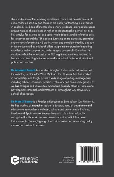 This book offers inter-disciplinary, evidence-informed discussion around notions of excellence in higher education teaching. It will act as a key stimulus for institutional and sector-wide debates and a reference point for initiatives around the TEF agenda.