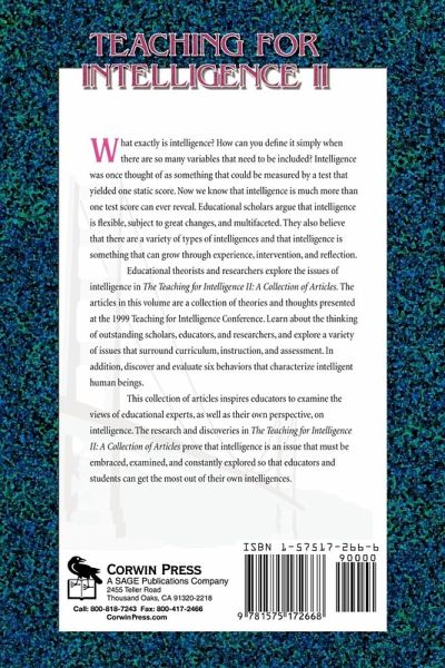 Teaching for Intelligence II brings together the top minds in education to discuss the issues surrounding intelligence. Taken directly from the 1999 Teaching for Intelligence Conference, experts discuss such topics as: Unleashing the Power of Perceptual Change Learning and Transfer Constructivist Assessment in Early Childhood Education Learning to Learn An invaluable resource for educators, Teaching for Intelligence II provides immediate access to these leading thinkers and their theories at the turn of a page.