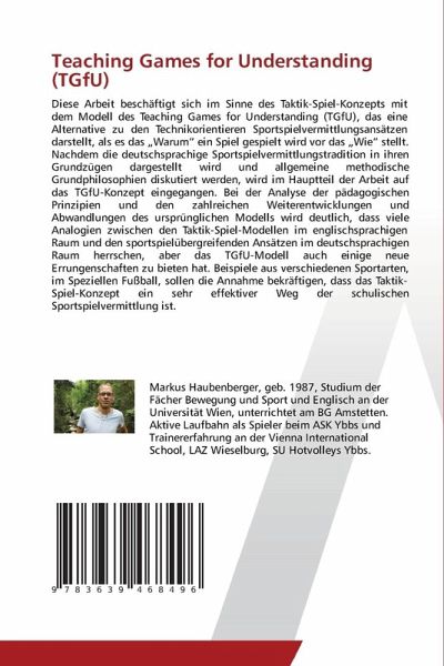 Diese Arbeit beschäftigt sich im Sinne des Taktik-Spiel-Konzepts mit dem Modell des Teaching Games for Understanding (TGfU), das eine Alternative zu den Technikorientieren Sportspielvermittlungsansätzen darstellt, als es das Warum ein Spiel gespielt wird vor das Wie stellt. Nachdem die deutschsprachige Sportspielvermittlungstradition in ihren Grundzügen dargestellt wird und allgemeine methodische Grundphilosophien diskutiert werden, wird im Hauptteil der Arbeit auf das TGfU-Konzept eingegangen. Bei der Analyse der pädagogischen Prinzipien und den zahlreichen Weiterentwicklungen und Abwandlungen des ursprünglichen Modells wird deutlich, dass viele Analogien zwischen den Taktik-Spiel-Modellen im englischsprachigen Raum und den sportspielübergreifenden Ansätzen im deutschsprachigen Raum herrschen, aber das TGfU-Modell auch einige neue Errungenschaften zu bieten hat. Beispiele aus verschiedenen Sportarten, im Speziellen Fußball, sollen die Annahme bekräftigen, dass das Taktik-Spiel-Konzept ein sehr effektiver Weg der schulischen Sportspielvermittlung ist.