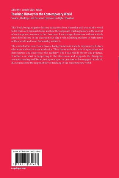 This book brings together history educators from Australia and around the world to tell their own personal stories and how they approach teaching history in the context of contemporary tensions in the classroom. It encourages historians to think actively about how history in the classroom can play a role in helping students to make sense of their world and to act honourably within it. The contributors come from diverse backgrounds and include experienced history educators and early career academics. They showcase both a mix of approaches and democratize and decolonize the academy. The book blends theory and practice. It reflects on what is happening in the classroom and supports the discipline to understanding itself better, to improve upon its practices and to engage in academic discussion about the responsibility of teaching in the contemporary world.