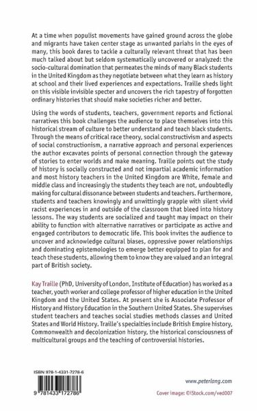 At a time when populist movements have gained ground across the globe and migrants have taken center stage as unwanted pariahs in the eyes of many, this book dares to tackle a culturally relevant threat, much talked about but seldom systematically uncovered or analyzed: the socio-cultural domination that permeates the minds of many Black students in the United Kingdom as they negotiate between what they learn as history at school and their lived experiences and expectations. Kay Traille shed light on this visible invisible specter and uncovers the rich tapestry of forgotten ordinary histories that should make societies richer and better. Using the words of students, teachers, government reports and fictional narratives this book challenges the audience to place themselves into this historical stream of culture to better understand and teach black students. Through the means of critical race theory, social constructivism and aspects of social constructionism, a narrative approach and personal experiences the author excavates points of personal connection through the gateway of stories to enter worlds and make meaning. Traille points out the study of history is socially constructed and not impartial academic information and most history teachers in the United Kingdom are White, female and middle class and increasingly the students they teach are not, undoubtedly making for cultural dissonance between students and teachers. Furthermore, students and teachers knowingly and unwittingly grapple with silent vivid racist experiences in and outside of the classroom that bleed into history lessons. The way students are socialized and taught may impact on their ability to function with alternative narratives or participate as active and engaged contributors to democratic life. This book invites the audience to uncover and acknowledge cultural biases, oppressive power relationships and dominating epistemologies to emerge better equipped to plan for and teach these students, allowing them to know they are valued and an integral part of British society.