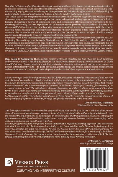 'Teaching In/Between: Curating educational spaces with autohistoria-teoría and conocimiento' is an iteration of an educator's embodied teaching and theorizing through testimonio work. Sotomayor, through a decolonizing feminist teaching inquiry, documents and analyzes her experiences as a facilitator in higher education while teaching the undergraduate course 'Latina Feminisms, Latinas in the US: Gender, Culture and Society'. This unique book is her interpretation and implementation of the seven recursive stages of Gloria Anzaldúa's conocimiento theory as transformative acts to guide her research design and teaching approach. Sotomayor's distinct bridging of Anzaldúa's theories of autohistoria-teoría and conocimiento offers an expansive perspective to how theorizing and curating our lived experiences can be transformational processes within academia. Sotomayor applies Anzaldúa's theories and her own theorizing to curate educational spaces that decolonize White hegemonic academic canons and empower underrepresented learners who may experience a deep sense of not belonging in academia. She situates herself in the study as curator, and her practice as curator as an agent of self-knowledge production and theorizing to create self-empowering learning environments. Sotomayor's work dwells within the lineage of border and cultural studies with shared voices of Gloria Anzaldúa, AnaLouise Keating, Mariana Ortega, Ami Kantawala, Maxine Greene, and Ruth Behar. Her work is considered a guide for teaching practitioners and researchers who hope to develop ways of knowing within their teaching environments that are inclusive and holistic for learners through a non-linear transformative process. 'Teaching In/Between' can be adapted for classroom use for pre-service teachers and instructors as well as creative interpretations for interdisciplinary works within Chicana/x, Latina/x, Art Education, Visual Arts and History, Women's & Gender Studies, Border and Cultural Studies.