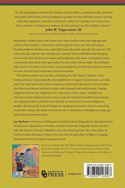 Indigenous students learn and retain more when teachers value the language and culture of the students' community and incorporate them into the curriculum. This is a principle enshrined in the UN Declaration on the Rights of Indigenous Peoples (2007) and borne out both by the successes of Indigenous-language immersion schools and by the failures of past assimilationist practices and the recent English-only policies of the No Child Left Behind Act in the United States. Teaching Indigenous Students puts culturally based education squarely into practice. The volume, edited and with an introduction by leading American Indian education scholar Jon Reyhner, brings together new and dynamic research from established and emerging voices in the field of American Indian and Indigenous education. All of the contributions show how the quality of education for Indigenous students can be improved through the promotion of culturally and linguistically appropriate schooling. Grounded in place, community, and culture, the approaches set out in this volume reflect the firsthand experiences of teachers and students in interacting not just with texts and one another, but also with the local community and environment. The authors address the specifics of teaching the full range of subjects-from learning literacy using culturally meaningful texts to inquiry-based science curricula, and from math instruction that incorporates real-world experience to social studies that blend oral history and local culture with national and world history. Teaching Indigenous Students also emphasizes the importance of art, music, and physical education, both traditional and modern, in producing well-rounded human beings and helping students establish their identity as twenty-first-century Indigenous peoples. Surveying the work of Indigenous-language immersion schools around the world, this volume also holds out hope for the revitalization of Indigenous languages and traditional cultural values.