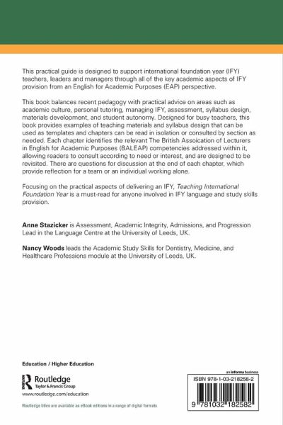 This book balances recent pedagogy with practical advice on areas such as academic culture, personal tutoring, managing IFY, assessment, syllabus design, materials development, and student autonomy. Designed for busy teachers, this book provides examples of teaching materials and syllabus design that can be used as templates and chapters can be read in isolation or consulted by section as needed. Each chapter identifies the relevant The British Assoication of Lecturers in English for Academic Purposes (BALEAP) competencies addressed within it, allowing readers to consult according to need or interest, and are designed to be revisited. There are questions for discussion at the end of each chapter which provide reflection for a team or an individual working alone.