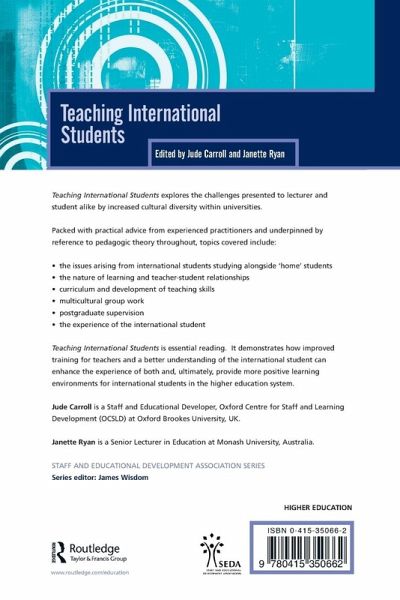 Teaching International Students explores the challenges presented to lecturer and student alike by increased cultural diversity within universities. Packed with practical advice from experienced practitioners and underpinned by reference to pedagogic theory throughout, topics covered include: * the issues arising from international students studying alongside 'home' students * the nature of learning and teacher-student relationships * curriculum and development of teaching skills * multicultural group work * postgraduate supervision * the experience of the international student Teaching International Students is essential reading. It demonstrates how improved training for teachers and a better understanding of the international student can enhance the experience of both and, ultimately, provide more positive learning environments for international students in the higher education system.