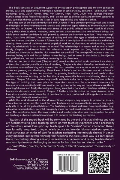 This book contains an argument supported by education philosophers as well as composite stories, data, and personal experiences. The author mentions a number of scholars (e.g., Benjamin, 1988; Buber, 1970; Noddings, 2005, 2013; Palmer, 1983; van Manen, 1986, 1991, 2000) who address important human issues in the field of education, and she ties their work and hers to show common themes within the issues of care, responsivity, and relational ethics. The first part of the book (Introduction and Chapters 1-3) is primarily philosophical, and the author shares the thoughts of the aforementioned scholars and others on topics relating to the very human work teachers do. The next section of the book (Chapters 4-6) combines theoretical works and empirical data to address the complexity and humanity of teaching. While the work described in the aforementioned chapters may appear to present an idea of ethical teacher perfection, this is not the case. Teachers are not supposed to be, nor are they logistically able to be, all things to all children. The final chapter instead addresses how stakeholders (e.g., educators, administrators, parents) can gently move our traditional education system toward this ideal. This conclusion shares the ways teachers and teacher educators can conceptualize the work on teaching-as-human-interaction and use it to improve the teaching perception.