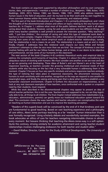 This book contains an argument supported by education philosophers as well as composite stories, data, and personal experiences. The author mentions a number of scholars (e.g., Benjamin, 1988; Buber, 1970; Noddings, 2005, 2013; Palmer, 1983; van Manen, 1986, 1991, 2000) who address important human issues in the field of education, and she ties their work and hers to show common themes within the issues of care, responsivity, and relational ethics. The first part of the book (Introduction and Chapters 1-3) is primarily philosophical, and the author shares the thoughts of the aforementioned scholars and others on topics relating to the very human work teachers do. The next section of the book (Chapters 4-6) combines theoretical works and empirical data to address the complexity and humanity of teaching. While the work described in the aforementioned chapters may appear to present an idea of ethical teacher perfection, this is not the case. Teachers are not supposed to be, nor are they logistically able to be, all things to all children. The final chapter instead addresses how stakeholders (e.g., educators, administrators, parents) can gently move our traditional education system toward this ideal. This conclusion shares the ways teachers and teacher educators can conceptualize the work on teaching-as-human-interaction and use it to improve the teaching perception.