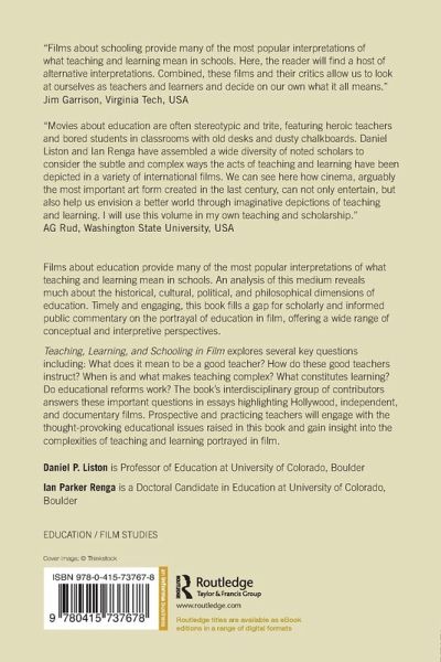 Films about education provide many of the most popular interpretations of what teaching and learning mean in schools. An analysis of this medium reveals much about the historical, cultural, political, and philosophical dimensions of education. Timely and engaging, this book fills a gap for scholarly and informed public commentary on the portrayal of education in film, offering a wide range of conceptual and interpretive perspectives. Teaching, Learning, and Schooling in Film explores several key questions, including: What does it mean to be a good teacher? How do these good teachers instruct? When is and what makes teaching complex? What constitutes learning? Do educational reforms work? The book's interdisciplinary group of contributors answers these important questions in essays highlighting Hollywood, independent, and documentary films. Prospective and practicing teachers will engage with the thought-provoking educational issues raised in this book and gain insight into the complexities of teaching and learning portrayed in film.