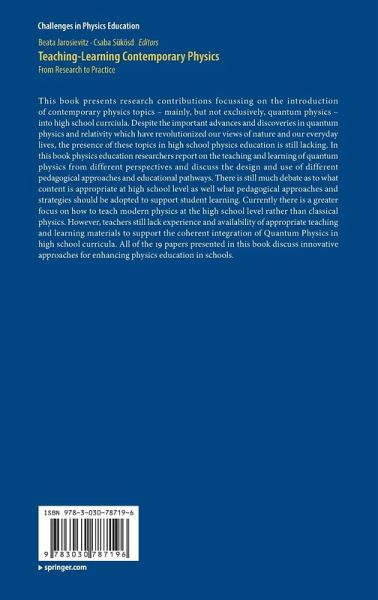 This book presents research contributions focussing on the introduction of contemporary physics topics - mainly, but not exclusively, quantum physics - into high school currciula. Despite the important advances and discoveries in quantum physics and relativity which have revolutionized our views of nature and our everyday lives, the presence of these topics in high school physics education is still lacking. In this book physics education researchers report on the teaching and learning of quantum physics from different perspectives and discuss the design and use of different pedagogical approaches and educational pathways. There is still much debate as to what content is appropriate at high school level as well what pedagogical approaches and strategies should be adopted to support student learning. Currently there is a greater focus on how to teach modern physics at the high school level rather than classical physics. However, teachers still lack experience and availability of appropriate teaching and learning materials to support the coherent integration of Quantum Physics in high school curricula. All of the 19 papers presented in this book discuss innovative approaches for enhancing physics education in schools.
