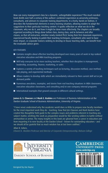 How can every management class be a dynamic, unforgettable experience? This much-needed book distils over half a century of the authors' combined experience as university professors, consultants, and advisors to corporate training departments. In a lively, hands-on fashion, it describes the fundamental elements in every learning situation, allowing readers to adapt the suggestions to their particular teaching context. It sparks reflection on what we do in the classroom, why we do it, and how it might be done more effectively. The chapters are broadly organized according to things you do before class, things you do during class, and things you do in between and after class, so that every instructor, whether newly-minted PhDs facing their first classroom experience, experienced faculty looking to polish their teaching techniques, consultants who want to have more impact, or corporate trainers wishing to develop in-house teaching skills, can benefit from the invaluable advice given.