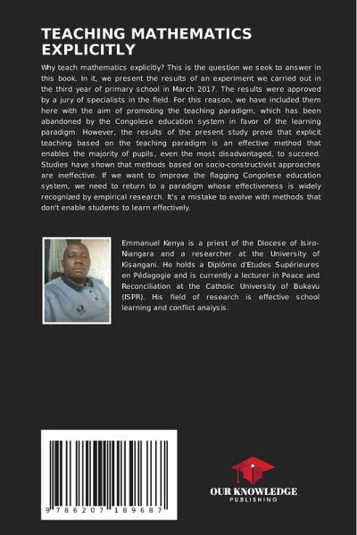 Why teach mathematics explicitly? This is the question we seek to answer in this book. In it, we present the results of an experiment we carried out in the third year of primary school in March 2017. The results were approved by a jury of specialists in the field. For this reason, we have included them here with the aim of promoting the teaching paradigm, which has been abandoned by the Congolese education system in favor of the learning paradigm. However, the results of the present study prove that explicit teaching based on the teaching paradigm is an effective method that enables the majority of pupils, even the most disadvantaged, to succeed. Studies have shown that methods based on socio-constructivist approaches are ineffective. If we want to improve the flagging Congolese education system, we need to return to a paradigm whose effectiveness is widely recognized by empirical research. It's a mistake to evolve with methods that don't enable students to learn effectively.