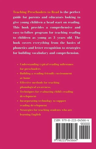 Are you tired of struggling to find effective strategies for teaching preschoolers to read? Do you want to inspire a love for reading in young minds but don't know where to start? Teaching Preschoolers to Read: How to Inspire a Love for Reading in Young Minds is the ultimate guide for early childhood educators, parents, and caregivers. In this comprehensive guidebook, you'll learn the ins and outs of early reading development, including typical reading milestones for preschoolers, how children learn to read, and the different types of reading materials that are appropriate for their age. You'll discover the importance of a language-rich environment and learn how to create a reading-friendly environment at home by establishing a daily reading routine and selecting age-appropriate books for preschoolers. The book also delves into specific techniques for teaching phonological awareness, alphabet knowledge, vocabulary development, print awareness, story comprehension and fluency, providing you with a wide range of tools to support the children's reading development. Additionally, you'll learn how to evaluate the child's reading development and use assessments to inform instruction. This book also covers the use of technology to support reading development and how to teach students who are learning English. Teaching Preschoolers to Read will teach you:Understanding typical reading milestones for preschoolers Building a reading-friendly environment at home Effective methods for teaching phonological awareness, alphabet knowledge, vocabulary development, print awareness, story comprehension and fluency Techniques for evaluating child's reading development and using assessments to inform instruction Incorporating technology to support reading development Strategies for teaching students who are learning English ... and so much more Don't wait any longer to start inspiring a love for reading in young minds. Get your copy of Teaching Preschoolers to Read: How to Inspire a Love for Reading in Young Minds today and start seeing results in your childs reading development.