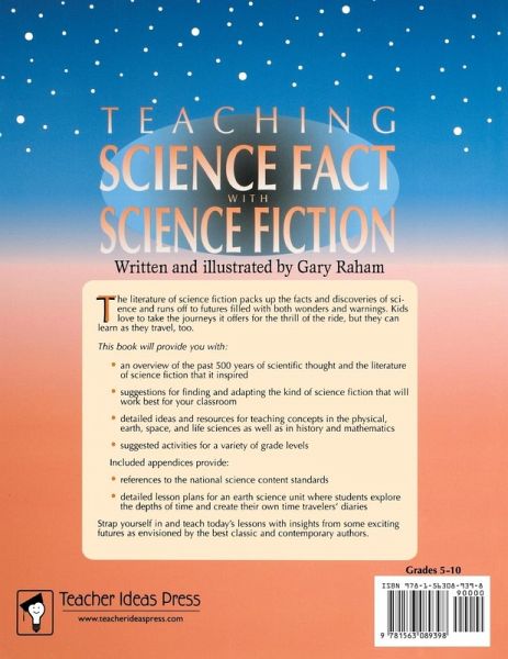 The literature of science fiction packs up the facts and discoveries of science and runs off to futures filled with both wonders and warnings. Kids love to take the journeys it offers for the thrill of the ride, but they can learn as they travel, too. This book will provide you with: an overview of the past 500 years of scientific thought and the literature of science fiction which it inspired; suggestions for finding and adapting the kind of science fiction that will work best for your classroom; detailed ideas and resources for teaching concepts in the physical, earth, space, and life sciences, as well in history and mathematics; and suggested activities for a variety of grade levels. Appendices provide: science references to help you keep the facts and the fictions straight; national science content standards; and detailed lesson plans for an earth science unit where students travel the depths of time and create their own time travelers' diaries.