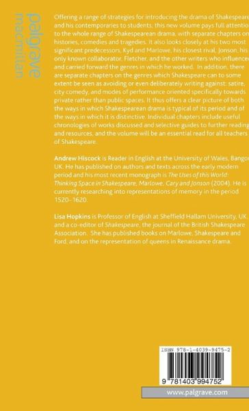 This collection offers practical suggestions for the integration of non-Shakespearean drama into the teaching of Shakespeare. It shows both the ways in which Shakespearean drama is typical of its period and of the ways in which it is distinctive, by looking at Shakespeare and other writers who influenced and developed the genres in which he worked.