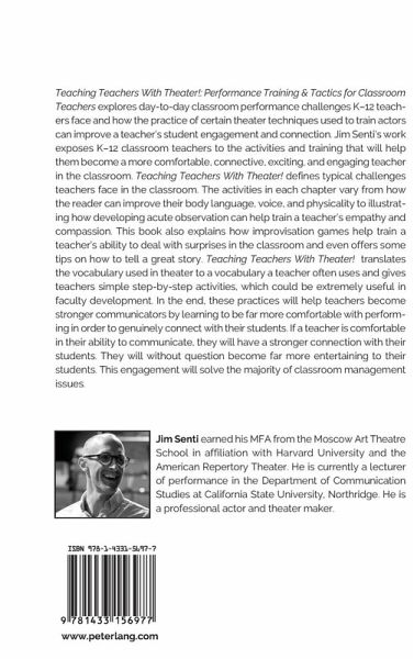 Teaching Teachers With Theater!: Performance Training & Tactics for Classroom Teachers explores day-to-day classroom performance challenges K-12 teachers face and how the practice of certain theater techniques used to train actors can improve a teacher's student engagement and connection. Jim Senti's work exposes K-12 classroom teachers to the activities and training that will help them become a more comfortable, connective, exciting, and engaging teacher in the classroom. Teaching Teachers With Theater! defines typical challenges teachers face in the classroom. The activities in each chapter vary from how the reader can improve their body language, voice, and physicality to illustrating how developing acute observation can help train a teacher's empathy and compassion. This book also explains how improvisation games help train a teacher's ability to deal with surprises in the classroom and even offers some tips on how to tell a great story. Teaching Teachers With Theater! translates the vocabulary used in theater to a vocabulary a teacher often uses and gives teachers simple step-by-step activities, which could be extremely useful in faculty development. In the end, these practices will help teachers become stronger communicators by learning to be far more comfortable with performing in order to genuinely connect with their students. If a teacher is comfortable in their ability to communicate, they will have a stronger connection with their students. They will without question become far more entertaining to their students. This engagement will solve the majority of classroom management issues.