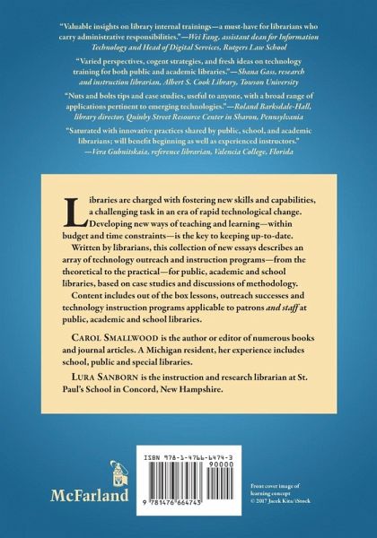 Libraries are charged with fostering new skills and capabilities, a challenging task in an era of rapid technological change. Developing new ways of teaching and learning--within budget and time constraints--is the key to keeping up-to-date. Written by librarians, this collection of new essays describes an array of technology outreach and instruction programs--from the theoretical to the practical--for public, academic and school libraries, based on case studies and discussions of methodology. Content includes out of the box lessons, outreach successes and technology instruction programs applicable to patrons and staff at public, academic and school libraries.
