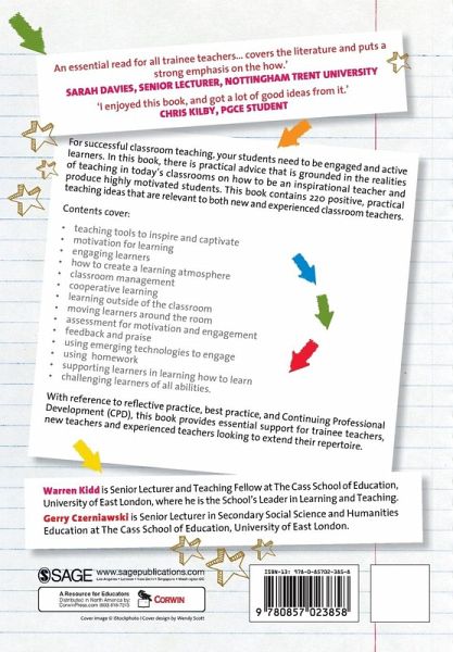 For successful classroom teaching, your students need to be engaged and active learners. In this book, there is practical advice that is grounded in the realities of teaching in today's classrooms on how to be an inspirational teacher and produce highly motivated students. This book contains 220 positive, practical teaching ideas that are relevant to both new and experienced classroom teachers.