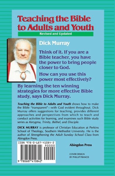 Ten winning strategies and multiple approaches for effective Bible study. A contributory book for lay leaders, pastors, or individuals wanting to broaden their approach to Scripture. Revised and updated with a foreword by Lyle Schaller. Teaching the Bible to Adults and Youth shows how to make the Bible "transparent"--with God evident throughout. Dick Murray offers suggestions for teaching, provides different approaches and perspectives from which to teach and conduct activities for learning, and examines such Bible study series as Kerygma, Trinity, Bethel, and Disciple.