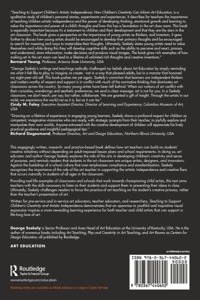 George Szekely is Senior Professor and Area Head of Art Education at the University of Kentucky, USA. He is the author of numerous books including Art Teaching, Play and Creativity in Art Teaching, and Art Rooms as Centers for Design Education, all published by Routledge.