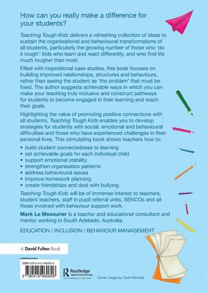 A collection of emotionally connecting ideas to sustain the organisational and behavioural transformations of all students, especially those who 'do it tough'. Highlighting the value of promoting positive, affective connection with students, it presents ways to incorporate these inclusive ideas into your practice.