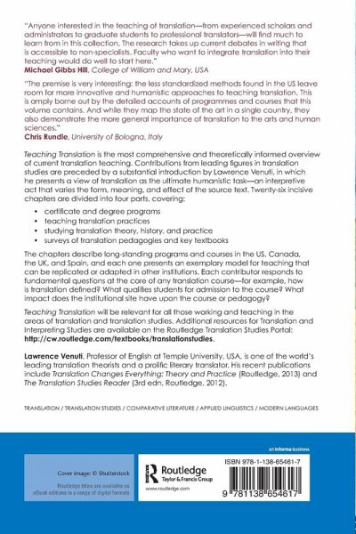 Teaching Translation will be relevant for all those working and teaching in the areas of translation and translation studies. Additional resources for Translation and Interpreting Studies are available on the Routledge Translation Studies Portal.