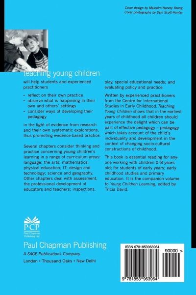 `Tricia David starts the book off with a commitment to the importance of relationships. "The impact of emotional aspects of a school or nursery situation has long been neglected in the UK, as is amply demonstrated by the list of criteria for judging the quality of teaching drawn from OfSTED critieria". Amen to that' - Times Educational Supplement, Friday Magazine `Teaching Young Children is essential reading for early years teacher trainers and anyone working with young children from birth to eight years old. It is an excellent companion volume to one of David's other books, Young Children Learning. David's many contributions to the literature in early years education has focused on the ways in which societies treat and educate young children. Teaching Young Children is an evidence- based book which raises important questions concerning the lives of young children and answers them in terms of the values underlying our society. David and her colleagues at the Centre for International Studies in Early Childhood have written a compelling book. Teaching Young Children is a valuable resource and a "must read" for those who care about the lives of our youngest citizens' - International Journal of Early Years Education Teaching Young Children will help students and experienced practitioners; to reflect on their own practice; observe what is happening in their own and others' settings; consider ways of developing their pedagogy in the light of evidence from research and their own systematic explorations, thus promoting evidence- based practice. Several chapters consider thinking and practice concerning young children' ;learning in a range of curriculum areas : language,; the arts; mathematics; physical education; IT; design and technology; science and geography. Other chapters deal with assessment, the professional development of educators and teachers; inspections, play, special educational needs; and evaluating policy and practice. Written by experienced practitioners from the centre for International Studies in early childhood, Teaching Young Children shows that in the earliest years of childhood, all children should experience the delight which can be part of effective pedagogy - pedagogy which takes account of the child's individuality and development, in the context of changing socio-cultural constructions of childhood.