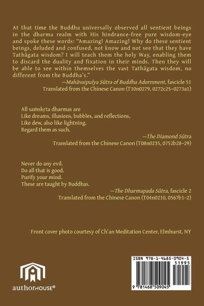 The sixteen sutras in this book are English translations of texts selected from the Chinese Buddhist Canon. Thirteen of them have never before been published in book form. The translator's introduction to Buddhist doctrine provides an organized background for readers at all levels to better understand and appreciate the teachings in these sutras, which cover a wide range of interesting topics. For example, in Sutra 1, the Buddha teaches karmic requitals and how one can avoid or mitigate unfortunate requitals. In Sutra 6, He predicts that long after His Dharma has perished, the next Buddha, Maitreya, will bring the Dharma back to this world. In Sutra 13, the Buddha reveals the mystery of consciousness, giving a detailed description of one's rebirth according to karmic force. In Sutra 14, He declares the eternity of nirvana and one's Buddha nature. In Sutra 16, He affirms that one's great compassion for all sentient beings will quickly lead one to Buddhahood. These English translations are easy to read, and Buddhist terms are explained in the glossary. One can read this book for pleasure, or study it for spiritual development. One can also recite the sutras, prayers, and mantras as a spiritual practice. Students in Buddhist Studies certainly can use this book to support and enhance their learning.