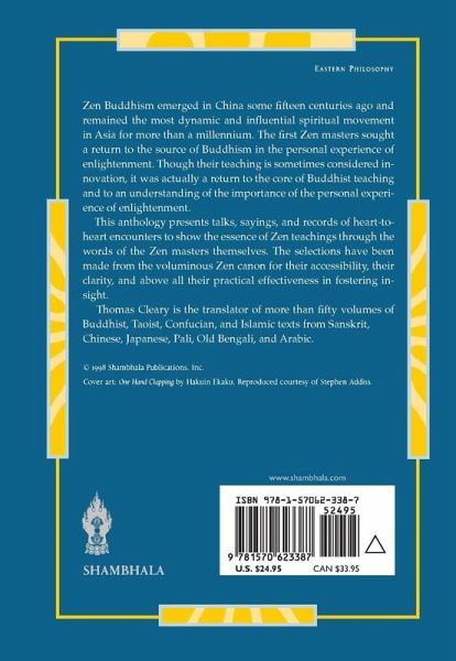 Zen Buddhism emerged in China some fifteen centuries ago and remained the most dynamic and influential spiritual movement in Asia for more than a millennium. Though the teachings of the first Zen masters are sometimes considered innovation, they were actually a return to the core of Buddhist teaching and to an understanding of the importance of the personal experience of enlightenment. This anthology presents talks, sayings, and records of heart-to-heart encounters to show the essence of Zen teaching through the words of the Zen masters themselves. The selections have been made from the voluminous Zen canon for their accessibility, their clarity, and above all their practical effectiveness in fostering insight.