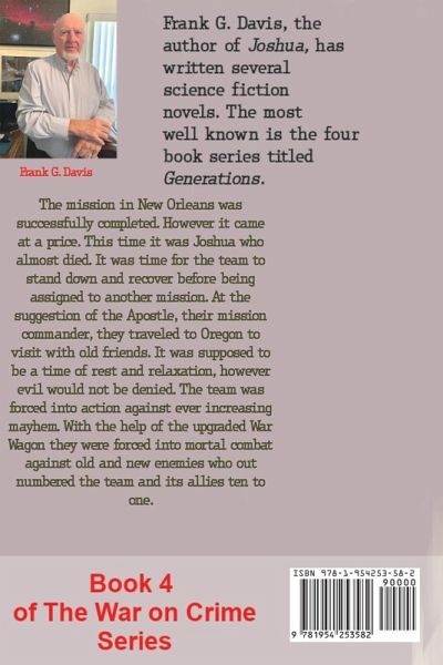 Team Joshua is a story about a select group of individuals who became special government agents assigned to take down criminals who think of themselves as untouchables. The group is lead by Joshua Brown, a 6'-7" former active duty Recon Marine. With him are three other former Marines, Pham Bin Minh, sniper, Mark Riley, demolition expert and Sarge, a large German Shepherd trained to identify explosives and to attack the enemy. A fourth member of the team is Simone Cantrell, a DEA special agent until she hooked up with the team. The last member of the team is Caleb Brown, Joshua's twin brother, also a former Recon Marine. Both Joshua and Caleb served in Afghanistan for two tours. A week before their last tour ended Caleb was killed by an IED. But his spirit survived, bonded to his brother and became a super sleuth, providing intel no human could gather. They have successfully completed all four missions over two and a half years. Each one more complex than the last. It was time to stand down and enjoy some well earned R&R. However, that was not to be. This mission was by far the most complex they had ever been assigned to. It was like going back to combat again, but this time in Oregon. Before it was over many people would die.