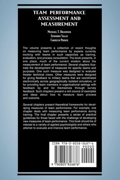 The book is intended primarily for those interested in research about team processes and outcomes--researchers and academics who possess a basic understanding of statistics and psychometrics. The bulk of research reported has applied aims which provide much practical information, such as how to design simulations, rating forms, and dimensions of team performance useful for feedback to many kinds of teams. In addition, there are examples from several different kinds of teams, including aircrews, nuclear power plant operators, hospital workers, ship combat information center groups, and theater technicians. Therefore the book should be useful to people who want to design measures to evaluate teams.