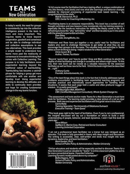 There has been much written about teams with an ongoing debate about the primacy of environment or dynamics as the most important element to effective teams. Yet the need for groups to be able to consistently tap into the collective intelligence present in the team is more and more important. This requires teams to move beyond cooperation, goodwill and consensus and be able to challenge individual and collective assumptions to see new alternatives. This book provides a simple but elegant model to understand how teams move past the mediocrity of consensus to innovative thinking that comes with Collective Learning. Collective Learning occurs when teams become aware of their assumptions and it challenges them to create a new understanding of what is real and what is important. When that happens, lasting change can come from within the team. There are four distinct abilities that must be present to provide the infrastructure for a group to learn collectively, and here is the 'how to' to dramatically increase team effectiveness. This book is focused on how a facilitator can help groups and the individuals in those groups slow down the emotional and belief processes in order to create opportunities to choose responses rather than being on automatic pilot. The purpose of the facilitator's effort is to move experiential learning beyond the traditional notion of teambuilding. Teambuilding has become a catchall phrase for helping a group get more comfortable with one another and develop trust. It is our opinion that to unlock the power of these experiential tools, facilitators must think about developing two Meta-skills - Emotional Maturity and Critical Thinking. Using experiential learning to develop the attitudes and skills to continually learn provides a real hope for creating fundamental change in the way people and groups interact.