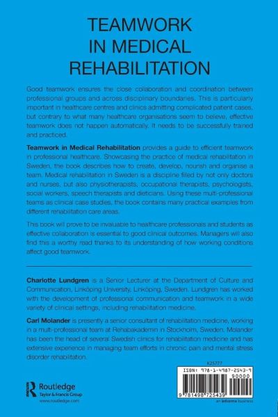 Good teamwork ensures the close collaboration and coordination between professional groups and across disciplinary boundaries. This is particularly important in healthcare centres and clinics admitting complicated patient cases, but contrary to what many healthcare organisations seem to believe, effective teamwork does not happen automatically. It needs to be successfully trained and practiced. Teamwork in Medical Rehabilitation provides a guide to efficient teamwork in professional healthcare. Showcasing the practice of medical rehabilitation in Sweden, the book describes how to create, develop, nourish and organise a team. Medical rehabilitation in Sweden is a discipline filled by not only doctors and nurses, but also physiotherapists, occupational therapists, psychologists, social workers, speech therapists and dieticians. Using these multi-professional teams as clinical case studies, the book contains many practical examples from different rehabilitation care areas.