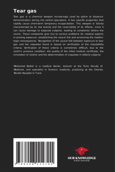 Tear gas is a chemical weapon increasingly used by police to disperse demonstrators during riot control operations. It has specific properties that rapidly cause short-term temporary incapacitation. This weapon is falsely characterized by its low toxicity and the reversibility of its effects, since it can cause damage to exposed subjects, leading to complaints before the courts. These complaints give rise to serious problems for medical experts in proving exposure, establishing the causal link and assessing the medico-legal consequences. Recognition of the causal link between exposure to tear gas and the sequelae found is based on verification of the imputability criteria. Verification of these criteria is sometimes difficult, due to the victim's previous condition, the quality of the initial medical certificate, the simulation of victims and the determination of sequelae in elderly subjects.