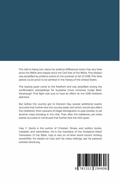 The United States of American is being torn about by political differences more than any time since the 1960s and maybe since the Civil War of the 1860s. This division was amplified by political events in the summer to fall of 2018. This time period could prove to be seminal in the history of the United States. It could precipitate this country into ever widening divisions, or it could be when the country realized it needed to pull together and heal the splits in our society. Democrats, liberals, leftists, and the mainstream media are on the left, while President Trump, Republicans, and conservatives are on the right, with the American people caught in the middle and being forced to choose sides, with no middle ground seemingly possible. This tearing apart came to the forefront and was amplified during the confirmation proceedings for Supreme Court nominee Judge Brett Kavanaugh. Democrats, aided by their allies on the left, pulled out all the stops and every dirty trick in the book to try to derail his confirmation, while Republicans and the rest of the right dug in and did what was necessary to ensure his confirmation. That fight was sure to have an effect on the 2018 midterm elections. But before the country got to Election Day, several additional events occurred that further tore the country apart and which would also affect the midterms, from caravans of illegal immigrants, to pipe bombs, to yet another mass shooting in the USA. Then after the midterms, yet more events occurred or continued that further tore the USA apart. This book will overview the Brett Kavanaugh confirmation proceedings in detail. It will then overview these additional major events that occurred up to the end of November 2018.
