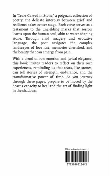 In "Tears Carved in Stone," a poignant collection of poetry, the delicate interplay between grief and resilience takes center stage. Each verse serves as a testament to the unyielding marks that sorrow leaves upon the human soul, akin to water shaping stone. Through vivid imagery and evocative language, the poet navigates the complex landscapes of love lost, memories cherished, and the beauty that can emerge from pain. With a blend of raw emotion and lyrical elegance, this book invites readers to reflect on their own experiences, reminding us that tears, like stones, can tell stories of strength, endurance, and the transformative power of time. As you journey through these pages, prepare to be moved by the heart's capacity to heal and the art of finding light in the shadows.