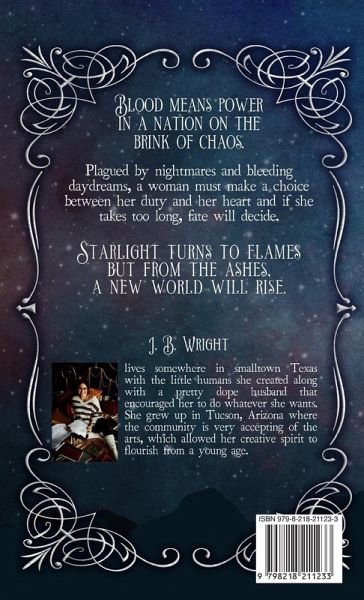 Blood means power in a nation on the brink of chaos. Plagued by nightmares and bleeding daydreams, a woman must make a choice between her duty and her heart and if she takes too long, fate will decide. Starlight turns to flames but from the ashes, a new world will rise.