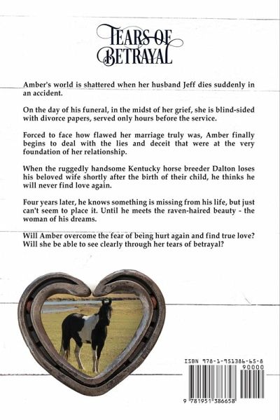 Amber's world is shattered when her husband Jeff dies suddenly in an accident. On the day of his funeral, in the midst of her grief, she is blind-sided with divorce papers, served only hours before the service. Forced to face how flawed her marriage truly was, Amber finally begins to deal with the lies and deceit that were at the very foundation of her relationship. When the ruggedly handsome Kentucky horse breeder Dalton loses his beloved wife shortly after the birth of their child, he thinks he will never find love again. Four years later, he knows something is missing from his life, but just can't seem to place it. Until he meets the raven-haired beauty - the woman of his dreams. Will Amber overcome the fear of being hurt again and find true love? Will she be able to see clearly through her tears of betrayal?