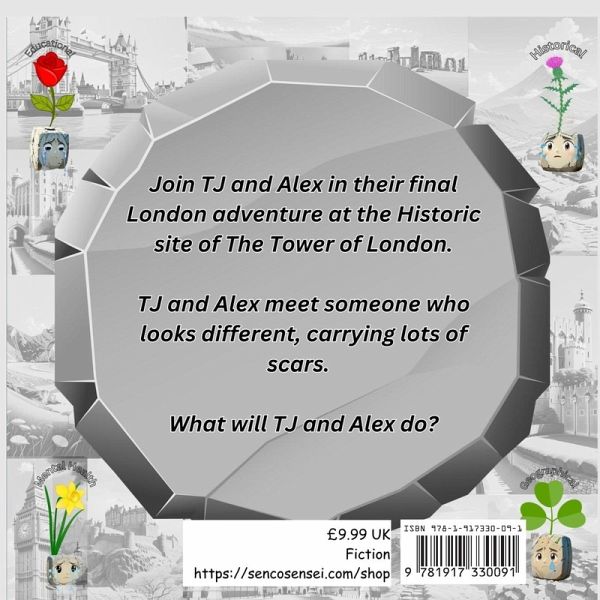 Embark on an enchanting adventure through the UK's most iconic landmarks while exploring emotions and mental health in this beautifully illustrated, trauma-informed book for readers of any age to pick up and enjoy. Follow TJ and Alex as they visit one the epic site of 'The Tower of London,' a prison, Royal Palace and Fortress amongst having other responsibilities, find out more when you read this book. With vibrant illustrations and intriguing facts that spark curiosity and wonder. Tears of the Rock Volume 4: The Tower of London is inspired by traumatic events based on true stories, that explore emotions and well-being, combining geographical, historical, and educational elements to create something truly special, making complex mental health concepts accessible and engaging for readers. This book is an essential resource for parents, teachers, trauma-informed practitioners and caregivers who aim to nurture emotional resilience and awareness in children and young adults. Encouraging young people alongside their parents to learn and explore the History of The Tower of London, developing their Fundamental British Values and curiosity about the country they live in and their place in the world. Join TJ and his family on their fourth adventure, the final adventure in London. TJ and his family will visit the Norman Castle built after the famous battle of Hastings in 1066 when England was invaded by William the Conqueror from Normandy. What will TJ and Alex discover?