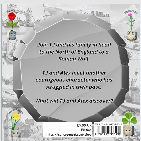 Embark on an enchanting adventure through the UK's most iconic landmarks while exploring emotions and mental health in this beautifully illustrated, trauma-informed book for readers of any age to pick up and enjoy. Follow TJ and Alex as they visit one the famous Roman Fort and wall, Hadrian's Wall, said to be build by more that 15,000 Legionnaires and built about 2000 years ago. This book has vibrant illustrations and intriguing facts that spark curiosity and wonder. Tears of the Rock Volume 7: Hadrian's Wall is inspired by traumatic events based on true stories, that explore emotions and well-being, combining geographical, historical, and educational elements to create something truly special, making complex mental health concepts accessible and engaging for readers of all ages. This book is an essential resource for parents, teachers, trauma-informed practitioners and caregivers who aim to nurture emotional resilience and awareness in children and young adults. Encouraging young people alongside their parents to learn and explore the more about Hadrian's Wall, developing their Fundamental British Values and curiosity about the country they live in and their place in the world. Join TJ and his family on their Seventh adventure. TJ and his family will visit the Roman Wall and Fort that defended against their Northern enemies. What will TJ and Alex discover at the Roman wall?