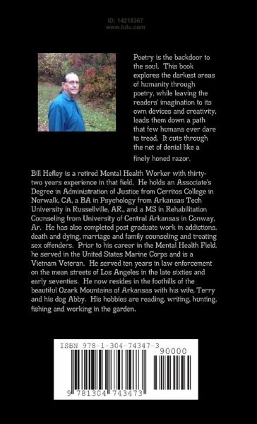 Poetry is the backdoor to the soul. This book explores the darkest areas of humanity through poetry, while leaving the readers' imagination to its own devices and creativity, leads them down a path that few humans ever dare to tread. It cuts through the net of denial like a finely honed razor. Explore thoughts on veterans, American Indians, addictions, redneck life, relationships, and sub-cultural influences in this collection.