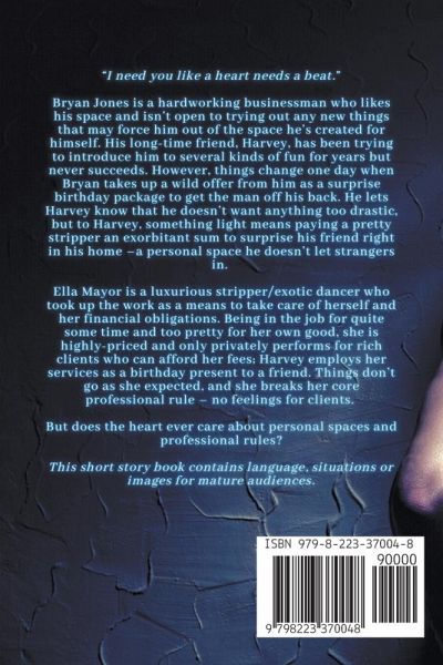 "I need you like a heart needs a beat." Bryan Jones is a hardworking businessman who likes his space and isn't open to trying out any new things that may force him out of the space he's created for himself. His long-time friend, Harvey, has been trying to introduce him to several kinds of fun for years but never succeeds. However, things change one day when Bryan takes up a wild offer from him as a surprise birthday package to get the man off his back. He lets Harvey know that he doesn't want anything too drastic, but to Harvey, something light means paying a pretty stripper an exorbitant sum to surprise his friend right in his home –a personal space he doesn't let strangers in. Ella Mayor is a luxurious stripper/exotic dancer who took up the work as a means to take care of herself and her financial obligations. Being in the job for quite some time and too pretty for her own good, she is highly-priced and only privately performs for rich clients who can afford her fees; Harvey employs her services as a birthday present to a friend. Things don't go as she expected, and she breaks her core professional rule – no feelings for clients. But does the heart ever care about personal spaces and professional rules?