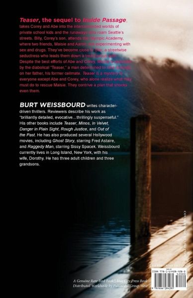 Teaser, the sequel to Inside Passage, takes Corey and Abe into the interconnected worlds of private school kids and the runaways who roam Seattle's streets.  Billy attends the Olympic Academy, where two friends, Maisie and Aaron, are experimenting with sex and drugs. They've become close to Star, a streetwise seductress who leads them down a treacherous path. Despite the best efforts of Abe and Corey, Maisie is abducted by the diabolical “Teaser,” a man determined to take revenge on her father, his former cellmate.  Teaser is a mystery to everyone except Abe and Corey, who alone realize what they must do to rescue Maisie. They contrive a plan that shocks even them.