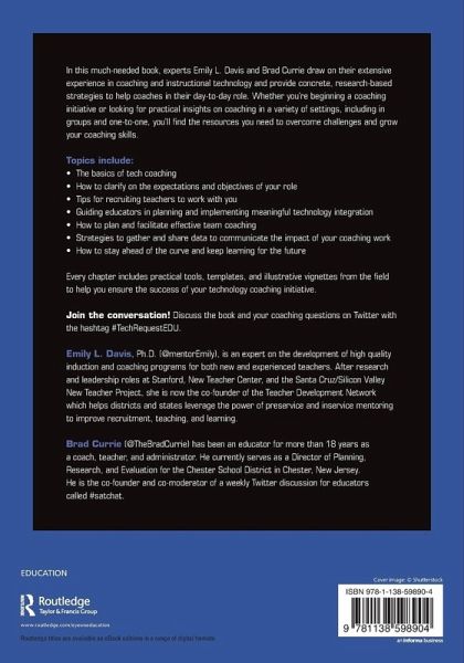 In this much-needed book, experts Emily L. Davis and Brad Currie draw on their extensive experience in coaching and instructional technology and provide concrete, research-based strategies to help coaches in their day-to-day role. Whether you're beginning a coaching initiative or looking for practical insights on coaching in a variety of settings, including in groups and one-to-one, you'll find the resources you need to overcome challenges and grow your coaching skills. Topics include: The basics of tech coaching How to clarify on the expectations and objectives of your role Tips for recruiting teachers to work with you Guiding educators in planning and implementing meaningful technology integration How to plan and facilitate effective team coaching Strategies to gather and share data to communicate the impact of your coaching work How to stay ahead of the curve and keep learning for the future Every chapter includes practical tools, templates, and illustrative vignettes from the field to help you ensure the success of your technology coaching initiative. Join the conversation! Discuss the book and your coaching questions on Twitter with the hashtag #TechRequestEDU.