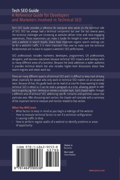 SEO professionals includes marketers, developers, programmers, UX professionals, designers, and business executives because technical SEO impacts and overlaps with so many different areas of a business. Because the book addresses a wider audience, it provides technical details but also includes higher-level discussions about how search engines and robots work too.