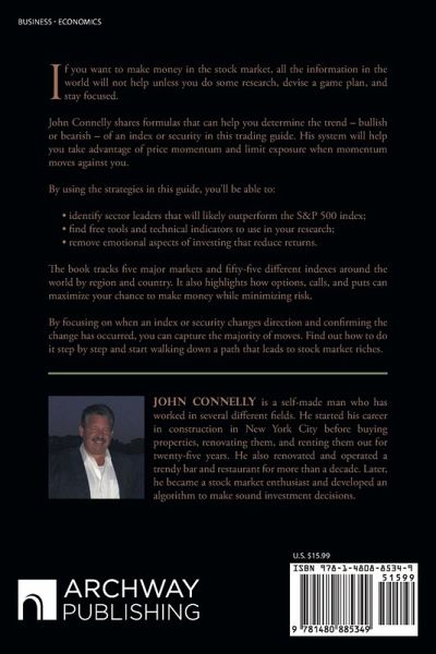 If you want to make money in the stock market, all the information in the world will not help unless you do some research, devise a game plan, and stay focused. John Connelly shares formulas that can help you determine the trend - bullish or bearish - of an index or security in this trading guide. His system will help you take advantage of price momentum and limit exposure when momentum moves against you. By using the strategies in this guide, you'll be able to: ¿ identify sector leaders that will likely outperform the S&P 500 index; ¿ find free tools and technical indicators to use in your research; ¿ remove emotional aspects of investing that reduce returns. The book tracks five major markets and fifty-five different indexes around the world by region and country. It also highlights how options, calls, and puts can maximize your chance to make money while minimizing risk. By focusing on when an index or security changes direction and confirming the change has occurred, you can capture the majority of moves. Find out how to do it step by step and start walking down a path that leads to stock market riches.