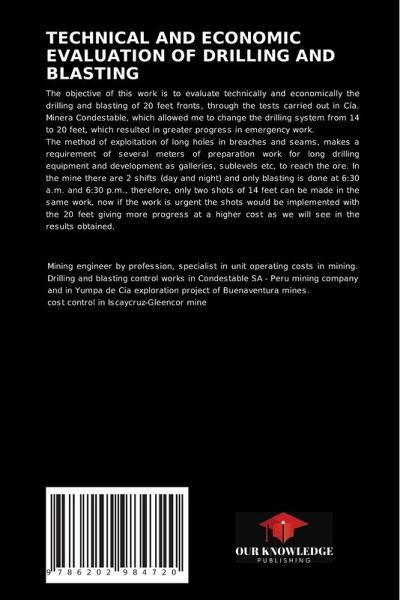 The objective of this work is to evaluate technically and economically the drilling and blasting of 20 feet fronts, through the tests carried out in Cía. Minera Condestable, which allowed me to change the drilling system from 14 to 20 feet, which resulted in greater progress in emergency work.The method of exploitation of long holes in breaches and seams, makes a requirement of several meters of preparation work for long drilling equipment and development as galleries, sublevels etc, to reach the ore. In the mine there are 2 shifts (day and night) and only blasting is done at 6:30 a.m. and 6:30 p.m., therefore, only two shots of 14 feet can be made in the same work, now if the work is urgent the shots would be implemented with the 20 feet giving more progress at a higher cost as we will see in the results obtained.